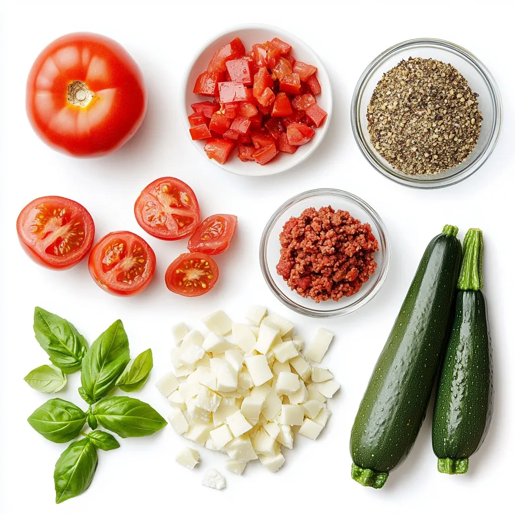 In this recipe, you need fresh zucchinis as the main base. The ground beef adds protein and richness. The diced tomatoes bring moisture and flavor. Onion and garlic enhance the taste. Italian seasoning and smoked paprika add depth. Mozzarella cheese provides a melty topping. Olive oil helps with cooking and flavor.
