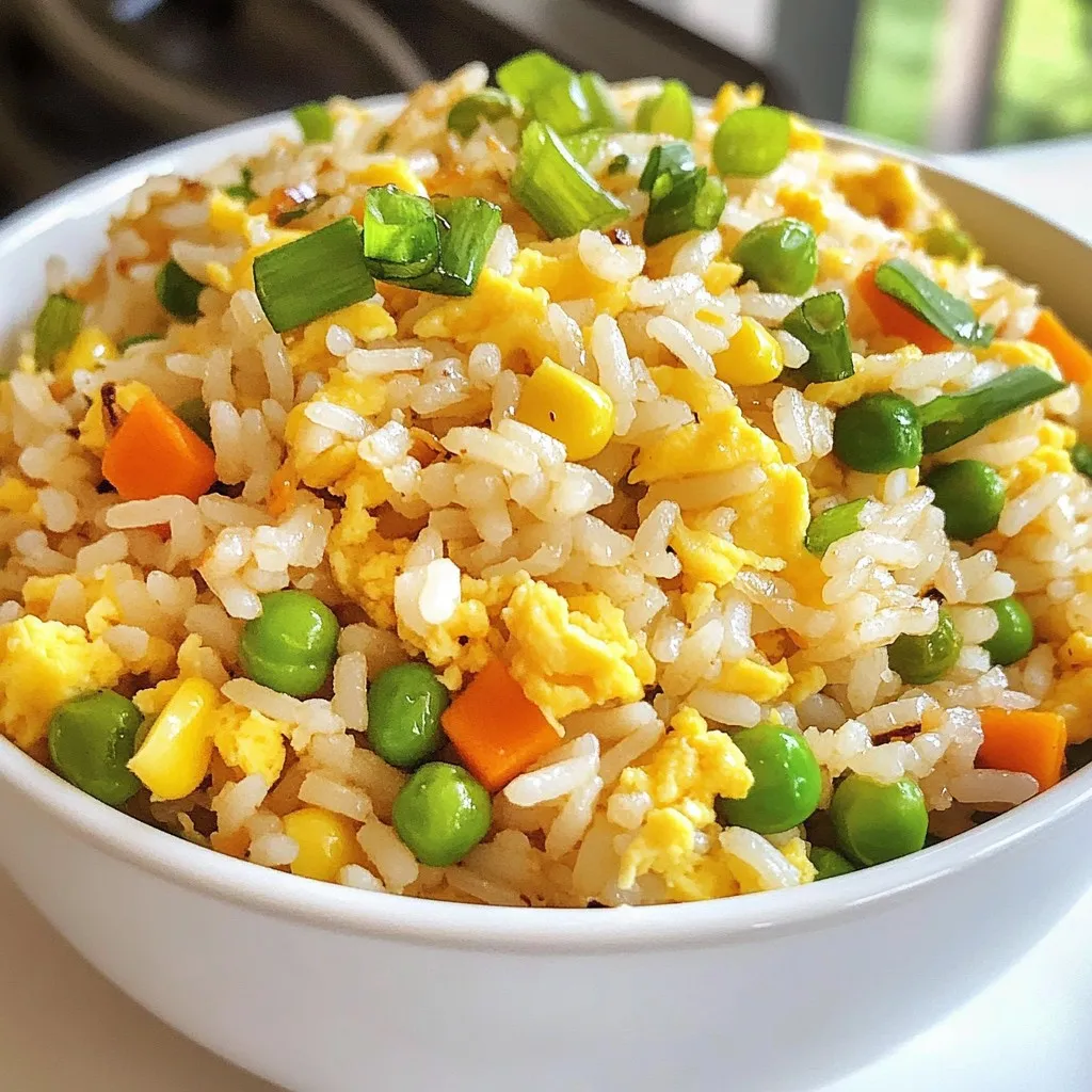 A quick and delicious fried rice dish with eggs and mixed vegetables.