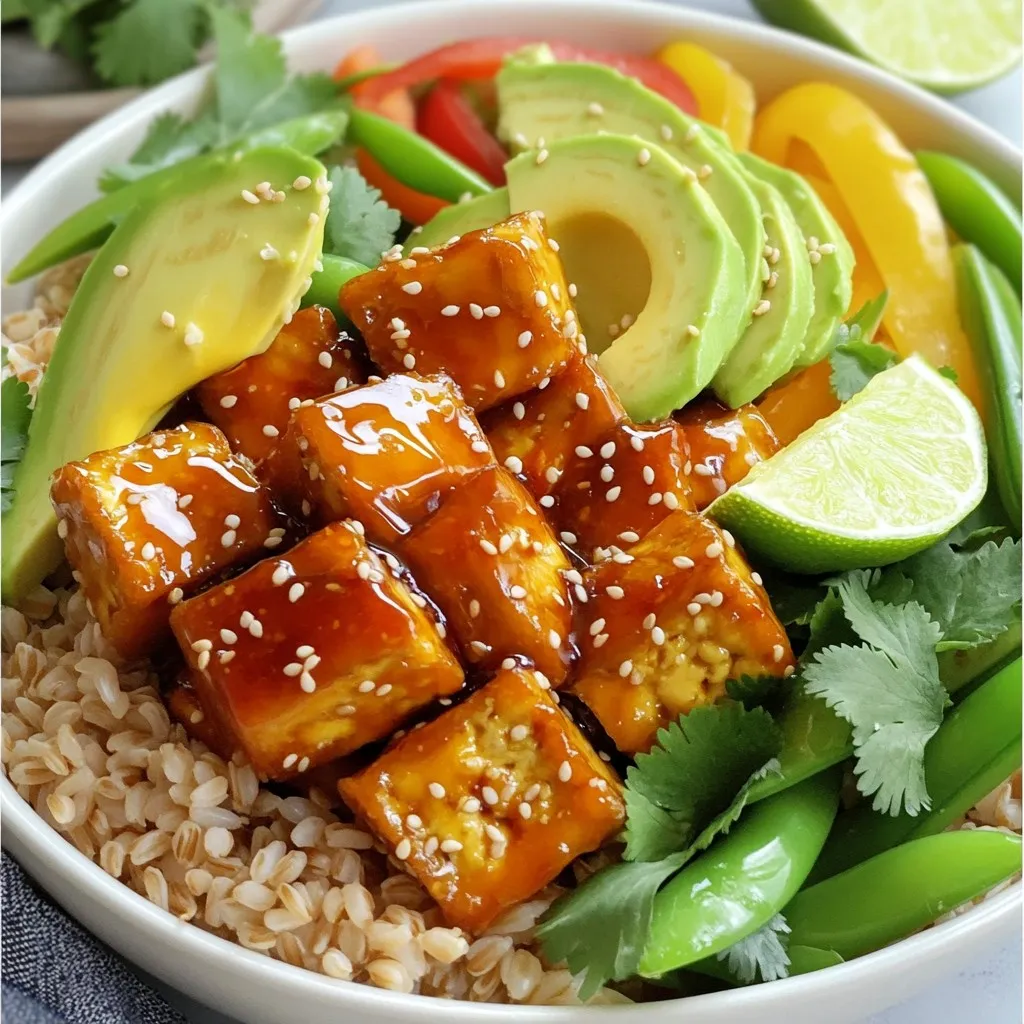 - 1 block (14 oz) firm tofu, pressed and diced - 2 tablespoons honey - 2 tablespoons sriracha sauce - 1 tablespoon soy sauce - 1 tablespoon toasted sesame oil The main ingredients form the base of this tasty dish. Firm tofu gives a nice texture. Honey adds sweetness, while sriracha brings heat. Soy sauce adds depth, and toasted sesame oil gives a rich flavor. - 1 cup mixed bell peppers, thinly sliced (red, yellow, and green for color) - 1 cup sugar snap peas, trimmed - 1 ripe avocado, sliced Adding vegetables brings freshness and crunch. Mixed bell peppers add color and a sweet taste. Sugar snap peas offer a crisp bite and a little sweetness. The avocado adds creaminess and balance. - 2 green onions, finely chopped - Sesame seeds for garnish - Fresh cilantro leaves for garnish - Lime wedges Garnishes make your dish pop! Green onions add sharpness. Sesame seeds give a nutty crunch. Fresh cilantro adds brightness, and lime wedges squeeze in zesty flavor. These make your bowls look and taste amazing! - Pressing the tofu: Start by wrapping the firm tofu in a clean kitchen towel. Place a heavy object on top for about 15 minutes. This helps remove extra moisture. - Dicing into cubes: After pressing, cut the tofu into bite-sized cubes. Aim for even pieces to ensure they cook evenly. - Mixing the sauce ingredients: In a small bowl, whisk together 2 tablespoons of honey, 2 tablespoons of sriracha sauce, 1 tablespoon of soy sauce, and 1 tablespoon of toasted sesame oil. This blend creates a sweet and spicy sauce that will coat the tofu perfectly. - Sautéing the tofu until golden: Heat a non-stick skillet over medium-high heat. Add a splash of oil if you like. Carefully place the tofu cubes in the hot skillet. Sauté for about 5-7 minutes. Stir occasionally until the tofu turns golden and crisp on all sides. - Sautéing mixed bell peppers and snap peas: In the same skillet, add 1 cup of thinly sliced mixed bell peppers and 1 cup of trimmed sugar snap peas. Sauté for about 2-3 minutes. You want them tender but still bright and vibrant. - Layering rice/quinoa, tofu, and vegetables: To assemble the bowls, start with a scoop of cooked brown rice or quinoa in each bowl. Top with the sautéed tofu and vegetables. Don’t forget a few slices of fresh avocado for creaminess. These steps make it easy to create a tasty meal. Enjoy the balance of sweet, spicy, and fresh flavors in your bowls! Pressing tofu is key to getting the best texture. It removes water and helps it soak up flavor. Wrap the tofu in a kitchen towel and place a heavy object on top for 15 minutes. This step makes sure the tofu gets crispy when cooked. If you want different cooking methods, try baking or grilling the tofu. Baking gives it a firm texture. Grilling adds a nice smoky flavor. Both options are tasty and healthy. You can adjust the honey and sriracha levels based on your taste. For a sweeter dish, add more honey. If you like heat, add more sriracha. This lets you create a flavor that fits you best. Feel free to enhance the sauce with garlic or ginger. These add depth and a fresh taste. Experiment with your favorite spices, like black pepper or chili flakes, to make it your own. For a beautiful bowl, arrange your ingredients thoughtfully. Start with brown rice or quinoa at the base. Then, add the tofu, veggies, and avocado slices on top. Use contrasting colors to make it pop. Bright bell peppers and green snap peas look great against the white bowl. Arrange avocado slices in a fan shape to impress your guests. {{image_4}} If you want to change up the protein in your bowls, try marinated chicken. It's simple and adds great flavor. Just marinate the chicken in the same honey sriracha sauce. Cook it in the skillet until golden. Tempeh is another tasty option. It has a nutty taste and absorbs sauce well. Cut it into cubes and cook it like the tofu. Both choices offer protein and taste. Mixing in seasonal veggies keeps your bowls fresh. You can swap out bell peppers for zucchini or broccoli. These veggies add crunch and nutrition. Adding leafy greens, like spinach or kale, boosts the health factor. Just toss them in the skillet for a quick sauté. They wilt down nicely and blend with the other flavors. When it comes to grains, you have options. Quinoa is light and fluffy, while brown rice is hearty. Both pair well with the honey sriracha tofu. If you want something different, try farro or couscous. These grains add unique textures and flavors. Experiment to find your favorite combination. To store leftovers, place them in an airtight container. Keep the tofu bowls in the fridge. They will stay fresh for up to three days. Make sure the bowls cool down before sealing them. This helps prevent sogginess. For reheating, use a microwave or a skillet. If using a microwave, heat in short intervals. Stir the bowl every 30 seconds for even warmth. For a skillet, add a splash of water to help steam the tofu. Heat on medium for about five minutes. This keeps the tofu nice and crispy. You can freeze parts of this dish. Freeze the tofu and veggies separately. Use freezer-safe bags or containers. They can last for up to two months. When you’re ready to eat, thaw them in the fridge overnight. Reheat as mentioned above for the best taste. You can store cooked tofu bowls in the fridge for up to 4 days. Make sure to keep them in an airtight container. This keeps them fresh and tasty. If you notice any signs of spoilage, throw them away. For best results, reheat only what you plan to eat. This helps maintain the texture and flavor. Yes, you can easily make this recipe vegan! Simply replace honey with maple syrup or agave nectar. Both offer sweetness without using animal products. The flavor will change slightly, but it will still taste great. You can also use other plant-based sweeteners to match your preference. If you need an alternative to sriracha, try chili paste or hot sauce. Both can bring heat to your dish. You can also make your own sauce by b