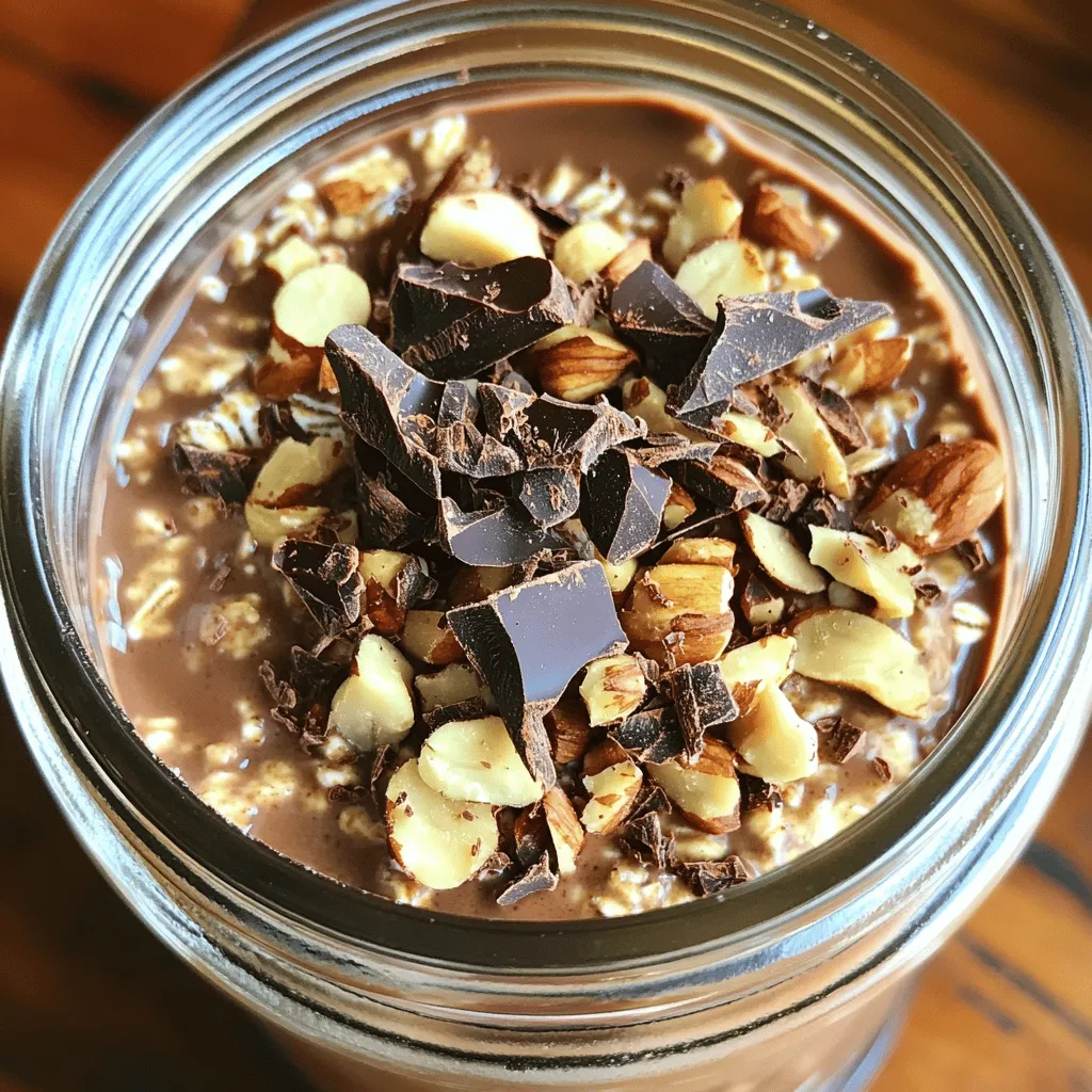 When you’re ready to enjoy your oats, take the jars out of the fridge. Give each jar a good stir to mix everything together. If the oats seem too thick, add a splash of milk to loosen them. For a delicious finish, top each serving with dark chocolate shavings or chips. You can also sprinkle chopped nuts or seeds for a nice crunch. Enjoy your mocha protein overnight oats as a quick breakfast or a tasty snack!