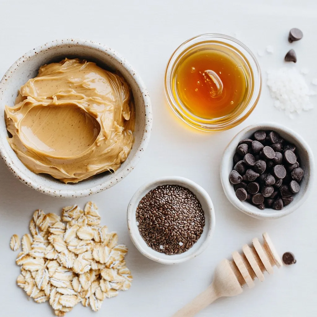 To make these energy bites, you need simple ingredients. Rolled oats give a nice base. The creamy peanut butter adds rich flavor and good fat. Honey or maple syrup sweetens the mix. Mini chocolate chips give a fun crunch. Ground flaxseed boosts nutrition. Vanilla extract adds a lovely aroma. A pinch of sea salt balances the sweetness.