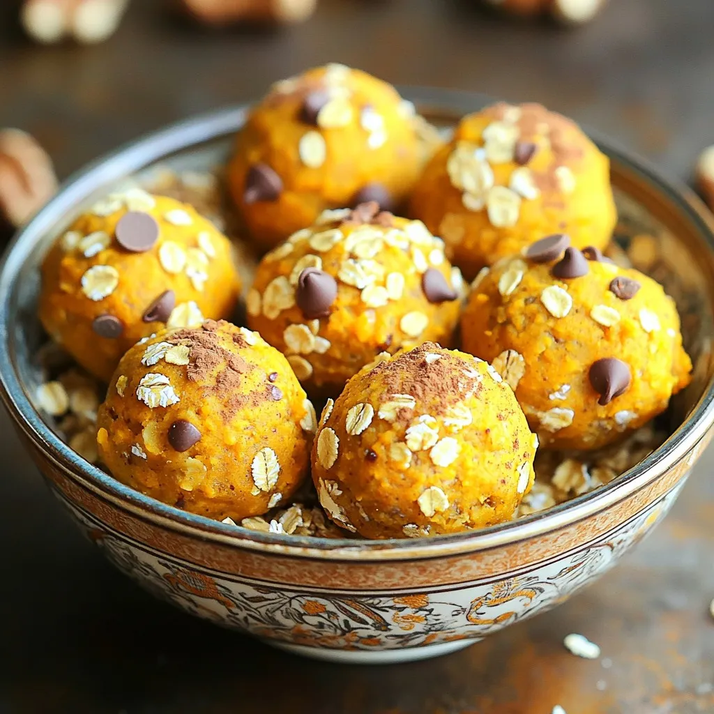 When making No-Bake Pumpkin Pie Energy Bites, you need a few key ingredients. First, rolled oats provide a hearty base. Pumpkin puree adds moisture and flavor. Nut butter gives creaminess and healthy fats. Honey or maple syrup sweetens the bites. Vanilla extract brings out the flavors. Pumpkin pie spice adds warmth and a hint of fall. Finally, a pinch of salt balances everything.