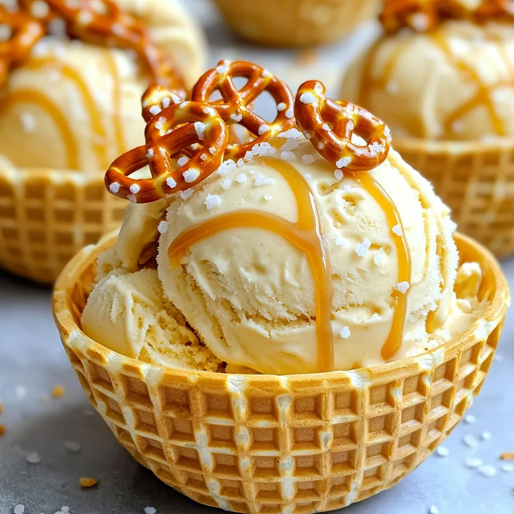 Garnishing makes your ice cream look and taste great. Before serving, sprinkle a pinch of flaky sea salt on top. This adds a nice burst of flavor. Use waffle bowls for a fun touch. Drizzle more salted caramel sauce on each scoop too. Whole pretzels make great decorations. They add a fun crunch and look nice. Enjoy your creation and impress your friends!