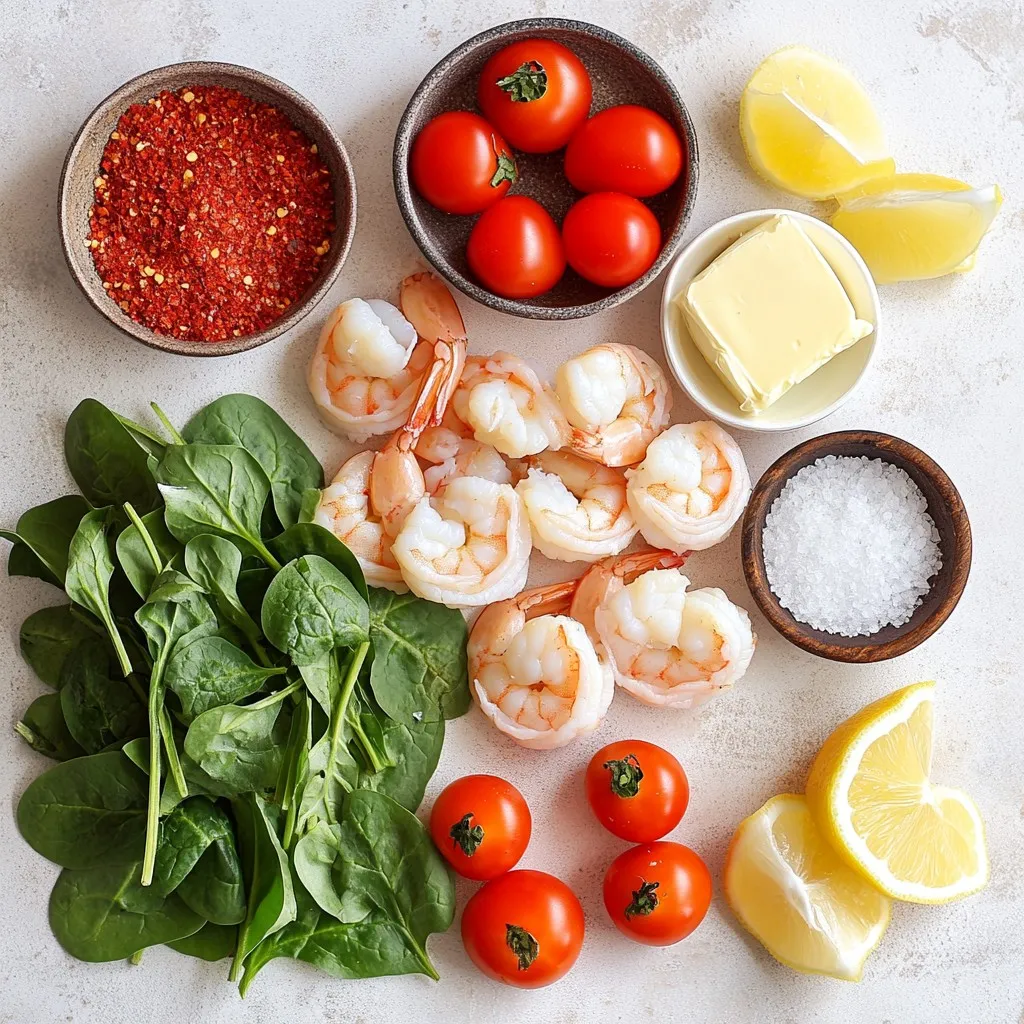 - 1 pound large shrimp, peeled and deveined - 3 tablespoons unsalted butter - 4 cloves garlic, finely minced - 1 cup heavy cream - 1 teaspoon paprika - ½ teaspoon red pepper flakes (optional, for a kick) - Salt and freshly cracked black pepper to taste - 1 cup cherry tomatoes, halved - 1 cup fresh spinach leaves - Fresh parsley, finely chopped (for garnish) - Lemon wedges (for a zesty side) To make One Pan Creamy Garlic Butter Shrimp, you need fresh, high-quality ingredients. For the shrimp, use large, peeled, and deveined ones for the best texture. The unsalted butter brings a rich flavor, while fresh garlic adds depth. Heavy cream will create a smooth and creamy sauce that ties everything together. For extra flavor, paprika gives a warm color and mild taste. If you enjoy heat, add red pepper flakes. Always season with salt and pepper to enhance the dish. The cherry tomatoes add sweetness and acidity, balancing the creaminess. Fresh spinach not only provides vibrant color but also adds nutrients. Don’t forget the parsley for garnish; it brightens the dish. Lemon wedges on the side will give a refreshing zing when squeezed over the dish. Gather these ingredients and get ready to create a delicious meal. {{ingredient_image_2}} Start by heating a spacious skillet over medium heat. Add 3 tablespoons of unsalted butter. Wait until the butter melts and begins to froth. This frothy look tells you it’s hot enough for the next step. Now, add 4 cloves of finely minced garlic to the skillet. Timing is key here. Stir the garlic for about 1 minute. You want it fragrant and slightly golden. Watch closely to avoid burning it. Burnt garlic can ruin your dish. Next, carefully add 1 pound of peeled and deveined shrimp into the skillet. Season them with salt, freshly cracked black pepper, and 1 teaspoon of paprika. If you like heat, sprinkle in ½ teaspoon of red pepper flakes. Cook the shrimp for about 2-3 minutes on each side. They should turn pink and opaque when done. Once cooked, remove the shrimp and set them aside on a plate. In the same skillet, pour in 1 cup of heavy cream. Use a wooden spoon to stir, scraping any tasty bits stuck at the bottom. Let this mixture simmer gently. This helps combine all the rich flavors from the pan. Now it's time to add some color and nutrition. Toss in 1 cup of halved cherry tomatoes and 1 cup of fresh spinach leaves. Cook for about 3-4 minutes, stirring occasionally. You want the spinach to wilt and the tomatoes to soften. This adds great flavor to the sauce. Finally, return the cooked shrimp to the skillet. Stir gently to coat the shrimp in that creamy sauce. Heat everything together for another 2 minutes. This warms the shrimp through. Taste the sauce and adjust with extra salt and pepper if needed. Serve this dish on a platter, garnished with fresh parsley. Add lemon wedges for a zesty touch that brings the dish to life. Enjoy your One Pan Creamy Garlic Butter Shrimp! To make the best creamy sauce, start with high-quality heavy cream. I suggest using fresh cream for a rich taste. As you heat the cream, stir it gently. This helps blend the flavors from the garlic and shrimp. Don't rush this step; let it simmer to thicken. A touch of salt and pepper enhances the flavor. If you want extra depth, add a squeeze of lemon juice at the end. A big mistake is overcooking the shrimp. Cook them just until they turn pink and opaque. This usually takes 2-3 minutes on each side. If they cook too long, they become rubbery. For garlic, watch the color closely. It should be golden, not brown. Burnt garlic tastes bitter and ruins the dish. Serve your creamy garlic butter shrimp over pasta. It pairs well with fettuccine or spaghetti. You can also enjoy it with crusty bread to soak up the sauce. A fresh salad on the side adds a nice crunch. For a pop of color, sprinkle extra parsley on top. Adding lemon wedges gives a bright, zesty touch. Pro Tips Fresh Shrimp: Always opt for the freshest shrimp you can find. If possible, buy shrimp that is still in the shell and devein them yourself for the best flavor. Adjust Creaminess: If you prefer a lighter sauce, consider substituting half of the heavy cream with chicken broth or a splash of white wine to keep the dish flavorful but less rich. Seasoning Balance: Be sure to taste the sauce before serving and adjust the seasoning. Adding a pinch of sugar can balance out the acidity of the tomatoes if needed. Garnish Wisely: For an extra touch of flavor, consider garnishing with freshly grated Parmesan cheese or a drizzle of high-quality olive oil just before serving. {{image_4}} If you don’t have shrimp, don’t worry! You can swap it with chicken or scallops. Chicken thighs or breasts work well. Just cut them into bite-sized pieces. Cook them in the same way as the shrimp until they are golden and cooked through. For scallops, sear them for about 2-3 minutes on each side. This keeps them tender and flavorful. Are you lactose intolerant? You can make this dish dairy-free! Use coconut cream instead of heavy cream. It gives a nice creamy texture and a hint of sweetness. For the butter, swap it with olive oil or vegan butter. This way, you still enjoy a rich flavor without dairy. Want more heat? Add different spices! Try cayenne pepper for a strong kick. You can also use jalapeños for a fresh touch. If you like smoky flavors, add smoked paprika. Just sprinkle in the spices when cooking the shrimp. Adjust the amount based on your heat preference for a tasty twist! To store leftovers, let the shrimp cool first. Place them in an airtight container. Make sure to cover them tightly. This keeps them fresh for about 2-3 days. Always label the container with the date. This helps you keep track of how long they have been stored. For the best flavor, reheat the shrimp on the stove. Use a non-stick skillet over low heat. Add a splash of cream or broth to keep it moist. Stir gently and heat until just warm. Avoid high heat; this can overcook the shri