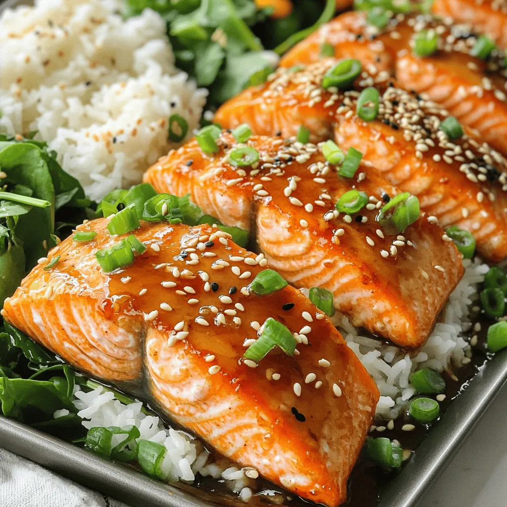 To start, you need 1 pound of fresh salmon fillet. Cut it into bite-sized cubes. This salmon should be bright and firm. Freshness is key for the best flavor. Next, gather the marinade ingredients. You will need: - 3 tablespoons honey (raw is best for flavor) - 2 tablespoons soy sauce (or tamari for gluten-free) - 3 cloves garlic, finely minced - 1 tablespoon freshly grated ginger - 1 tablespoon extra virgin olive oil - Sea salt and freshly cracked black pepper, to taste These ingredients create a sweet and savory mix that brings out the salmon’s taste. For the final touch, consider some optional garnishes: - 1 tablespoon toasted sesame seeds - 2 green onions, thinly sliced These add both crunch and color, making your dish pop. They also enhance the dish's visual appeal when served. To start, grab a medium mixing bowl. In this bowl, whisk together three tablespoons of honey, two tablespoons of soy sauce, three cloves of minced garlic, and one tablespoon of freshly grated ginger. Mix until the honey dissolves and everything blends well. This marinade gives the salmon its sweet and savory flavor. Next, take one pound of fresh salmon fillet and cut it into bite-sized cubes. Season the salmon with a sprinkle of sea salt and freshly cracked black pepper. Then, add the seasoned salmon to the marinade. Gently toss the fish to coat every piece evenly. Let the salmon marinate for about 15 minutes. This time helps the salmon absorb all the flavors. Heat a large non-stick skillet over medium-high heat. Pour in one tablespoon of extra virgin olive oil. Wait until the oil shimmers slightly, which means it’s hot enough. Carefully add the marinated salmon bites to the skillet. Make sure to leave space between the pieces to allow even cooking. Sear the salmon for about 3-4 minutes on one side. Flip each piece and cook for another 3-4 minutes until golden brown and fully cooked. Once the salmon bites are cooked, pour the reserved marinade from the bowl into the skillet. Stir gently and let it simmer for about 1-2 minutes. This thickens the sauce, creating a sticky glaze that coats the salmon. When it’s done, remove the skillet from heat. Sprinkle toasted sesame seeds over the salmon for crunch. Finish with sliced green onions for a fresh touch. To cook salmon just right, start with fresh fillets. Cut them into bite-sized cubes. This helps them cook evenly. Use medium-high heat for the skillet. Sear one side for 3-4 minutes. Then flip and cook for another 3-4 minutes. Look for a golden brown color. Use a fork to check if the salmon flakes easily. If it does, it's done! To boost flavor, let the salmon marinate for at least 15 minutes. The honey, soy sauce, garlic, and ginger blend well together. You can also add a splash of lime juice for brightness. If you like spice, try adding a pinch of red pepper flakes to the marinade. This adds a nice kick! When serving, arrange the salmon bites on a nice platter. Drizzle some of the thickened glaze over the top. Sprinkle toasted sesame seeds for crunch. Add sliced green onions for color. For a full meal, serve the salmon with fluffy rice and mixed greens. This makes the dish look inviting and delicious! {{image_4}} You can easily make this dish gluten-free. Simply swap regular soy sauce for tamari. Tamari is a gluten-free soy sauce, and it works great. This change keeps the same rich flavor. You can also use coconut aminos as a soy sauce alternative. It brings a slight sweetness too. Feel free to mix and match ingredients to suit your taste. Don't have fresh ginger? Use ground ginger instead, but use less. If you want a different flavor, try maple syrup instead of honey. For a spicy kick, add a dash of red pepper flakes to the marinade. You can even use other fish, like trout, if salmon isn’t available. These honey garlic salmon bites shine on their own, but pair them with sides for a full meal. Serve them over fluffy rice for a classic touch. A side of steamed veggies adds color and nutrition. For a fresh twist, try a simple salad with a light vinaigrette. You can also serve them as a fun appetizer at your next gathering. Just place them on skewers for easy eating! To store your leftover salmon bites, place them in an airtight container. Make sure to let them cool before sealing. Keep the container in the fridge. They will stay fresh for up to three days. If you want to enjoy them later, try to use them soon. To freeze the salmon bites, let them cool completely first. Then, place them in a freezer-safe bag. Remove as much air as possible before sealing. This helps to prevent freezer burn. Your salmon bites can last up to three months in the freezer. When you're ready to eat, thaw them in the fridge overnight. To reheat, you can use a skillet or the microwave. If using a skillet, heat some oil over medium heat. Add the salmon and cook until warm, around 3-4 minutes. If you prefer the microwave, use a microwave-safe dish. Heat on low power for 1-2 minutes, checking often. This helps keep the salmon moist and tasty. Enjoy your leftover salmon bites just as much as the first time! For this recipe, I recommend using fresh salmon fillet. Wild-caught salmon has a rich flavor. You can also use farmed salmon if fresh wild-caught is not available. Both options work well for honey garlic salmon bites. The key is to choose a quality piece that has bright, clear flesh. Avoid salmon with a dull color or strong fishy smell. Yes, you can substitute honey with maple syrup or agave nectar. Both options provide sweetness, but they will change the flavor a bit. If you want a sugar option, brown sugar can work too. Just mix it well with the soy sauce and garlic to dissolve. Keep in mind that the taste may vary with each sweetener. To check if the salmon is done, look for a few signs. The flesh should turn opaque and easily flake with a fork. You can also use a meat thermometer; the internal temperature should reach 145°F. If you see the salmon browning nicely and it flakes eas