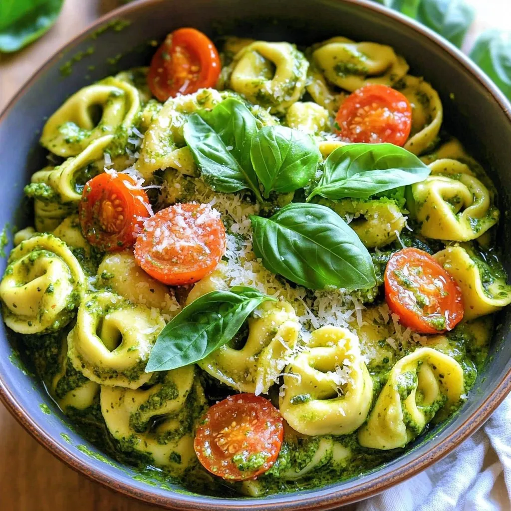 - 12 oz cheese tortellini (fresh or frozen) - 1 cup cherry tomatoes, halved - 1 cup baby spinach - 1 cup heavy cream - 1/2 cup basil pesto (store-bought or homemade) - 1/2 cup grated Parmesan cheese, plus extra for serving - 2 tablespoons olive oil - 3 cloves garlic, minced - Salt and pepper to taste - Fresh basil leaves - Extra Parmesan cheese The heart of this dish lies in its simple yet flavorful ingredients. Cheese tortellini serves as a delicious base. You can use fresh or frozen tortellini, making it easy to prepare. Cherry tomatoes add a burst of freshness and sweetness. Baby spinach brings in color and nutrients, while heavy cream gives that rich, creamy texture we all love. Basil pesto, whether you buy it or make it, adds an aromatic touch. Grated Parmesan cheese melts into the dish, enhancing the flavor. Olive oil and minced garlic create a fragrant base. Lastly, don’t forget salt and pepper; they bring all the flavors together. For garnishes, fresh basil leaves and extra Parmesan cheese elevate the dish. They add a pop of color and flavor. These ingredients come together to create a meal that feels fancy but is quick and easy to make. 1. Warm 2 tablespoons of olive oil in a large pot over medium heat. 2. Once the oil is hot, add 3 cloves of minced garlic. Sauté for about 1 minute. Stir often to prevent burning. The garlic should smell fragrant and turn lightly golden. 1. Next, add 1 cup of halved cherry tomatoes to the pot. Sauté for about 3-4 minutes. This helps the tomatoes soften and release their juices. 2. Slowly pour in 1 cup of heavy cream. Stir well to mix with the garlic and tomatoes. 3. Add 1/2 cup of basil pesto. Mix thoroughly until the cream and pesto combine into a smooth sauce. 4. Raise the heat slightly. Bring the mixture to a gentle simmer. This step enhances the flavors of the dish. 1. Add 12 ounces of cheese tortellini to the pot. Stir gently to coat them in the sauce. Cook according to package instructions, about 3-5 minutes for fresh tortellini. They should be tender and heated through. 2. Once cooked, fold in 1 cup of baby spinach and 1/2 cup of grated Parmesan cheese. Stir gently until the spinach wilts and the cheese melts. This creates a rich, creamy sauce that hugs the tortellini. 3. Taste your dish and season with salt and pepper as needed. Adjust for the best flavor. 4. Remove the pot from heat and let it rest for a couple of minutes. This helps the dish thicken before serving. - Ensuring even cooking of tortellini: Cook tortellini in boiling water for 3-5 minutes. Stir gently to keep them from sticking. If using frozen tortellini, follow package instructions. This way, all pieces cook evenly and become soft. - Keeping it creamy: To keep your dish creamy, use heavy cream and mix well with pesto. Avoid high heat when adding cream. This helps prevent curdling and keeps the sauce smooth. - Recommended spices: Add a pinch of red pepper flakes for some heat. A sprinkle of Italian seasoning can boost flavors too. Freshly cracked black pepper adds a nice touch as well. - Adding protein options: For extra protein, try adding cooked chicken, shrimp, or even chickpeas. These options blend well with the creamy sauce and enhance the meal's nutrition. - Best pairings: Serve your tortellini with a side salad or garlic bread. A light white wine or sparkling water complements the dish perfectly. - Serving temperatures: Enjoy this dish hot for the best taste. Let it cool slightly before serving to avoid burns. The flavors deepen as it sits, so it’s also great as leftovers! {{image_4}} You can easily change the pasta type in this dish. Use any shape you like. Bowtie or penne work well too. If you want a lighter option, try using zucchini noodles. For vegetables, you have many choices. Add bell peppers for sweetness, or mushrooms for earthiness. Broccoli or peas can also add color and nutrition. If you need a gluten-free option, choose gluten-free tortellini. Many brands offer this now, and it tastes great. You can also use gluten-free pasta if you prefer. For a vegan adaptation, switch the cheese tortellini for a vegan version. Use coconut cream instead of heavy cream. Look for vegan pesto or make your own with nuts and basil. In summer, add fresh corn or diced cucumbers. These add a nice crunch and freshness to the dish. You can also try fresh herbs like parsley or dill. In winter, consider adding roasted butternut squash or kale. These ingredients bring warmth and heartiness to your meal. They blend well with the creamy sauce and make it cozy and comforting. To keep your One-Pot Creamy Pesto Tortellini fresh, use airtight containers. Glass or plastic work well. Make sure they seal tightly to avoid air. Your leftovers will last about three to four days in the fridge. Label the containers with the date for easy tracking. When you're ready to enjoy your leftovers, the best method is using the stove. Heat a pan over low to medium heat. Add a splash of water or cream to keep it creamy. Stir often to avoid burning. If using a microwave, heat in short bursts. Stir in between to help it heat evenly. This way, you avoid sogginess. If you want to freeze the dish, first cool it completely. Then, place it in freezer-safe bags or containers. Squeeze out as much air as you can. This helps prevent freezer burn. Your dish can freeze well for up to three months. When you're ready to eat, thaw it in the fridge overnight. Reheat using the same methods as above for the best results. It takes about 10 minutes to prep and 20 minutes to cook. In total, you will need 30 minutes to make this dish. This quick time is perfect for busy days. Yes, you can use homemade pesto. Fresh basil, garlic, nuts, cheese, and olive oil make a great blend. Blend these ingredients until smooth. Feel free to adjust the flavors to your taste. Homemade pesto adds a personal touch to the dish. You can add a variety of vegetables to this recipe. Here are some great options: - Zucchini - Bell peppers - Peas 