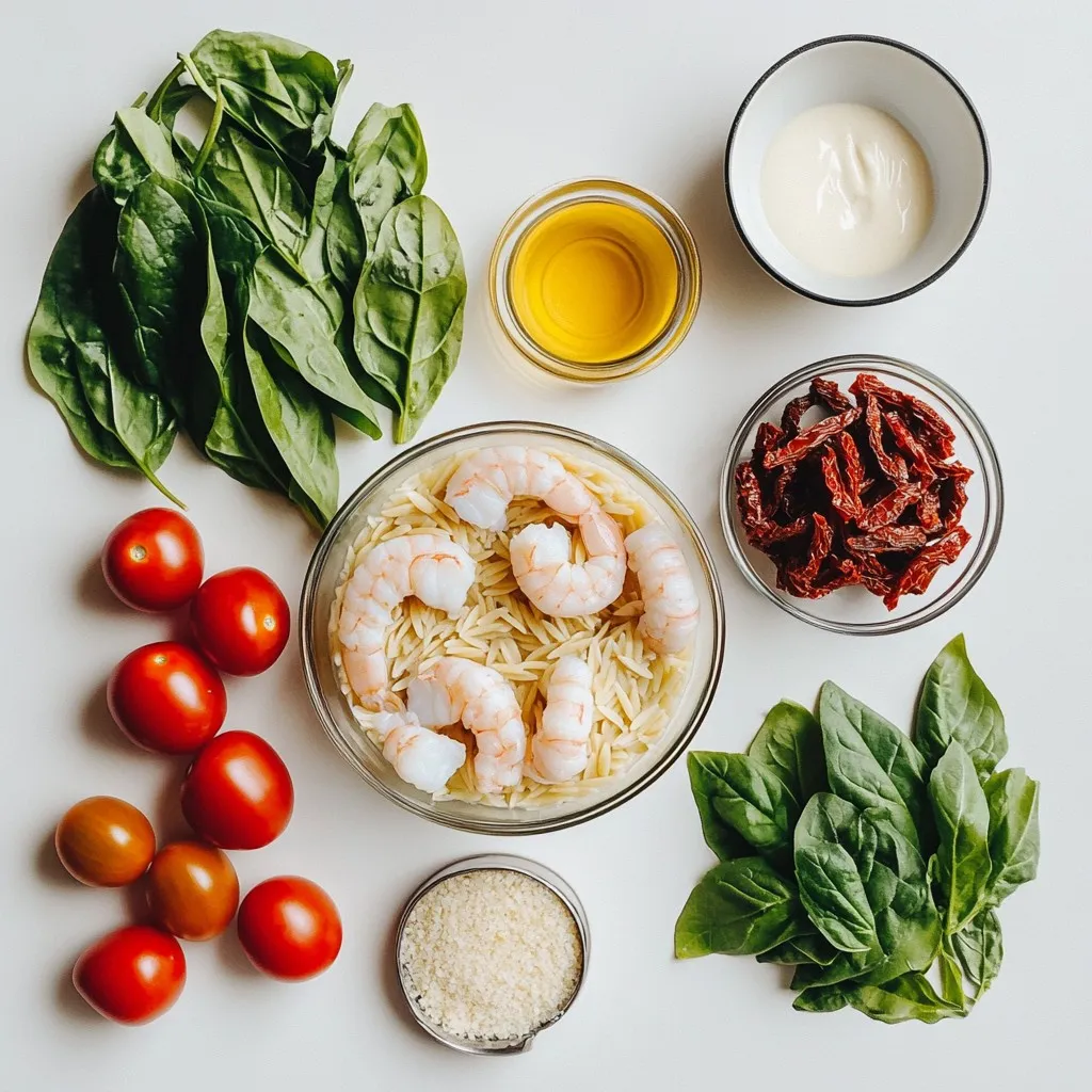 To make One Pot Creamy Tuscan Shrimp Orzo, you will need: