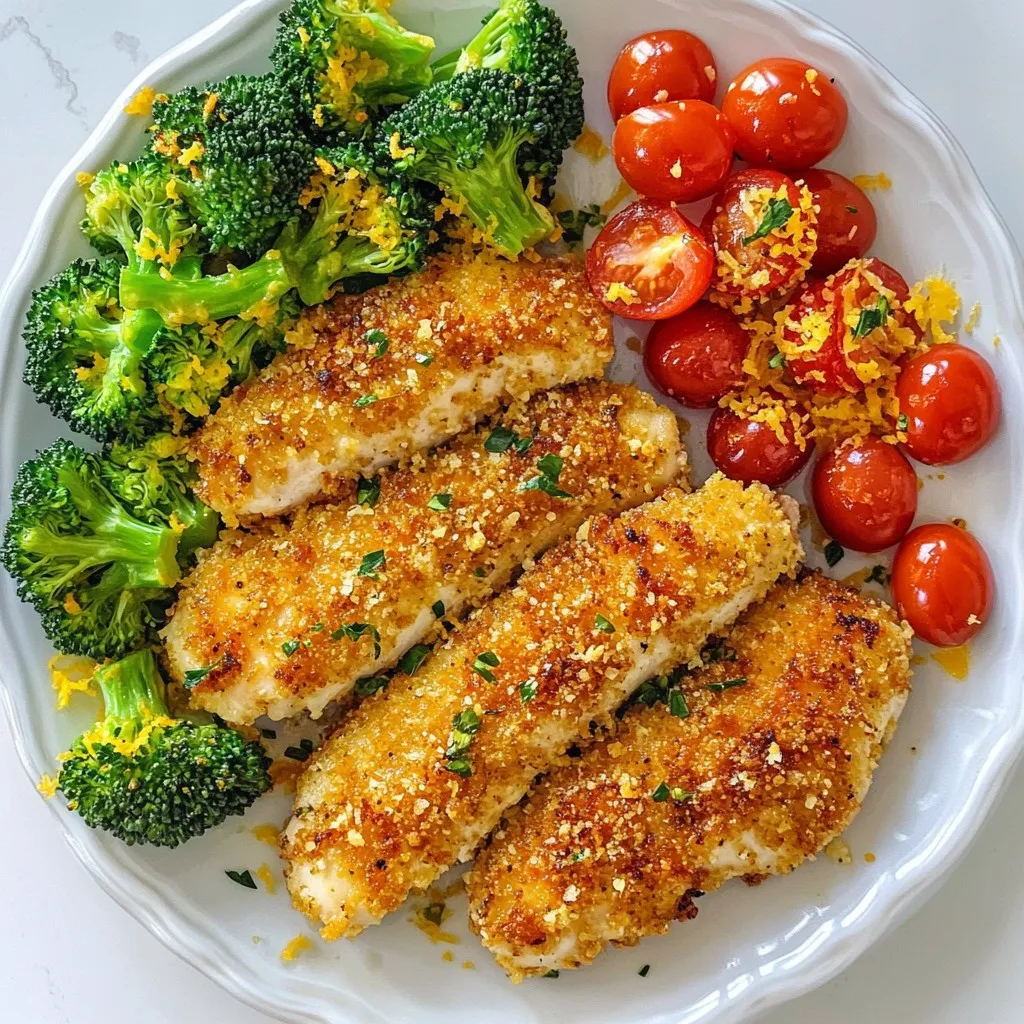 Each ingredient plays a role in building flavor and texture. The chicken breasts are the main protein. Parmesan cheese gives a rich, salty taste. Panko breadcrumbs add a nice crunch. Garlic powder, Italian seasoning, and smoked paprika bring warmth and depth. Olive oil helps everything brown nicely. Finally, lemon and veggies brighten up the dish, making it colorful and fresh.