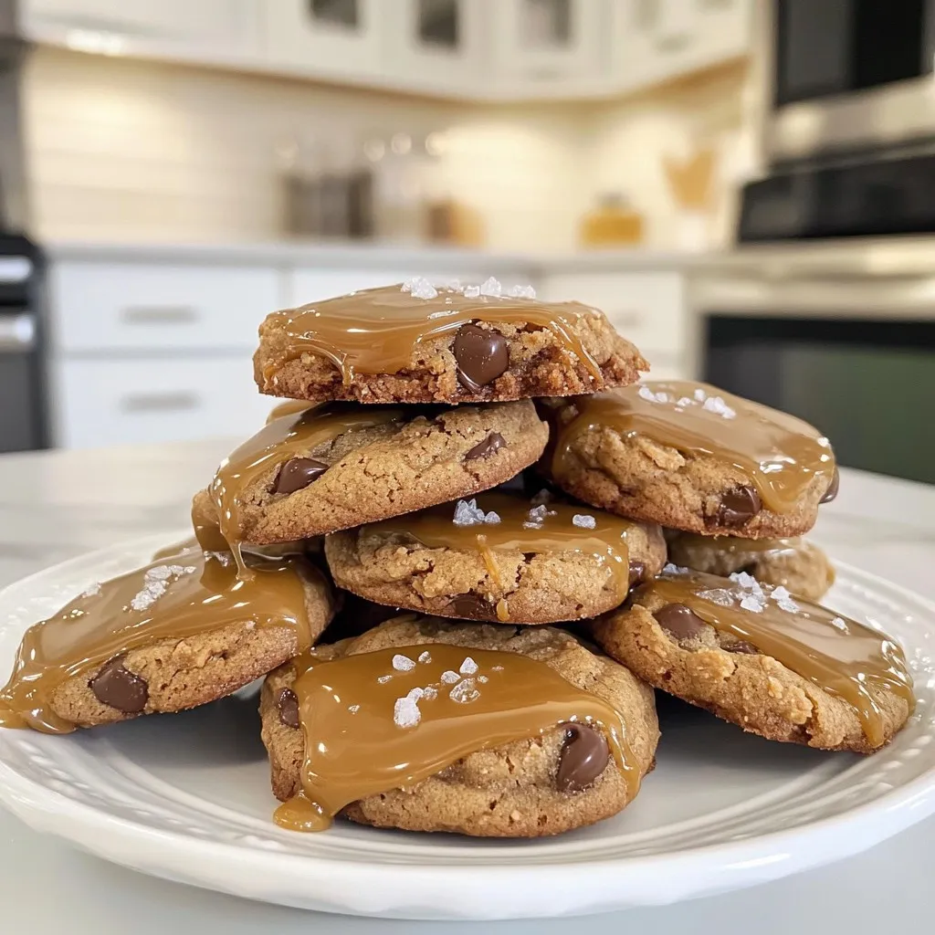 For a lovely presentation, stack your cookies on a decorative plate. Drizzle extra caramel sauce on top. A sprinkle of flaky sea salt adds a nice touch too. This makes your cookies look as good as they taste. Serve them warm for that gooey, melt-in-your-mouth experience!
