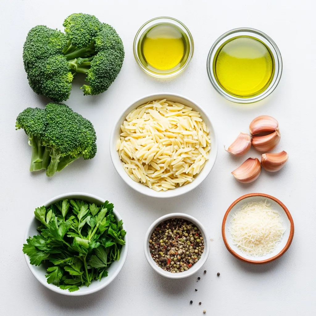 When making Chicken Sausage Broccoli Orzo, the ingredients are simple yet full of flavor. You start with orzo pasta, which is small and cooks quickly. Olive oil adds richness and helps to sauté the sausage. Speaking of sausage, I like using chicken sausage for a lighter touch, but feel free to use your favorite type. Fresh broccoli gives a nice crunch, and it’s packed with nutrients.
