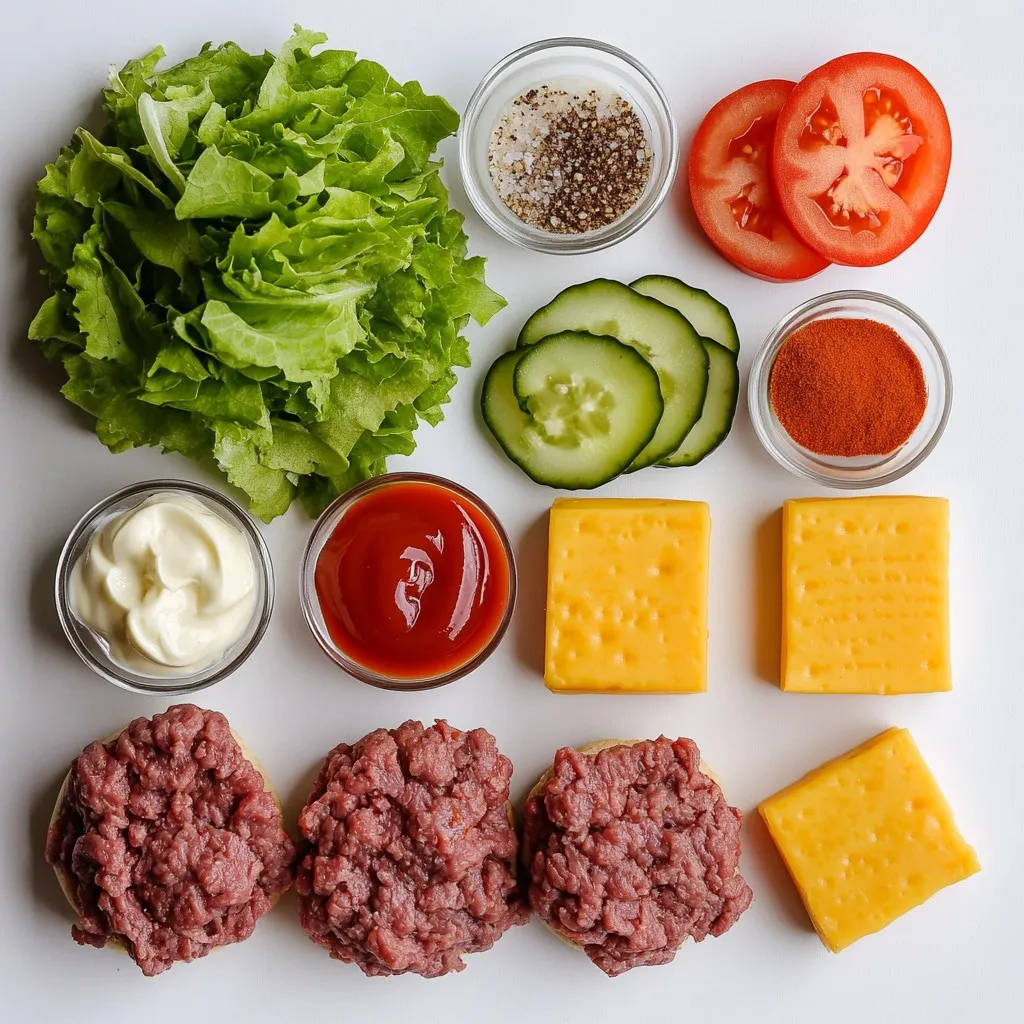 Gather these ingredients before you start. You can use ground beef for a classic taste or plant-based meat for a healthier twist. The spices add flavor and depth to the patties. Garlic powder, onion powder, and smoked paprika create a savory mix. Don’t forget the salt and black pepper for that extra kick.