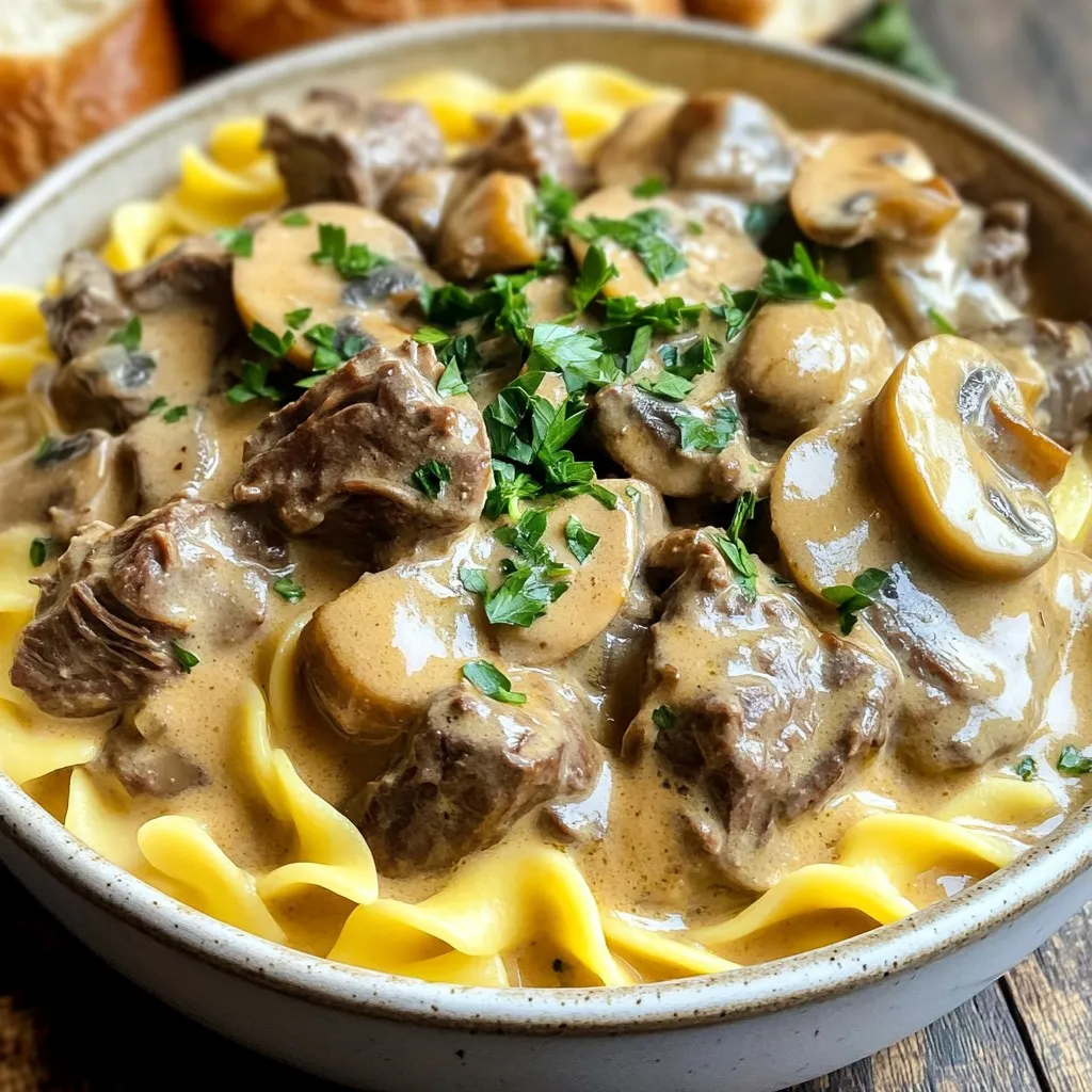For a tasty beef stroganoff, you need specific ingredients. First, the beef stew meat is key. I recommend using 1.5 lbs, cut into bite-sized pieces. This meat cooks well and becomes tender. Next, you’ll want 8 oz of mushrooms. Both button and cremini work great, adding a nice earthy flavor.