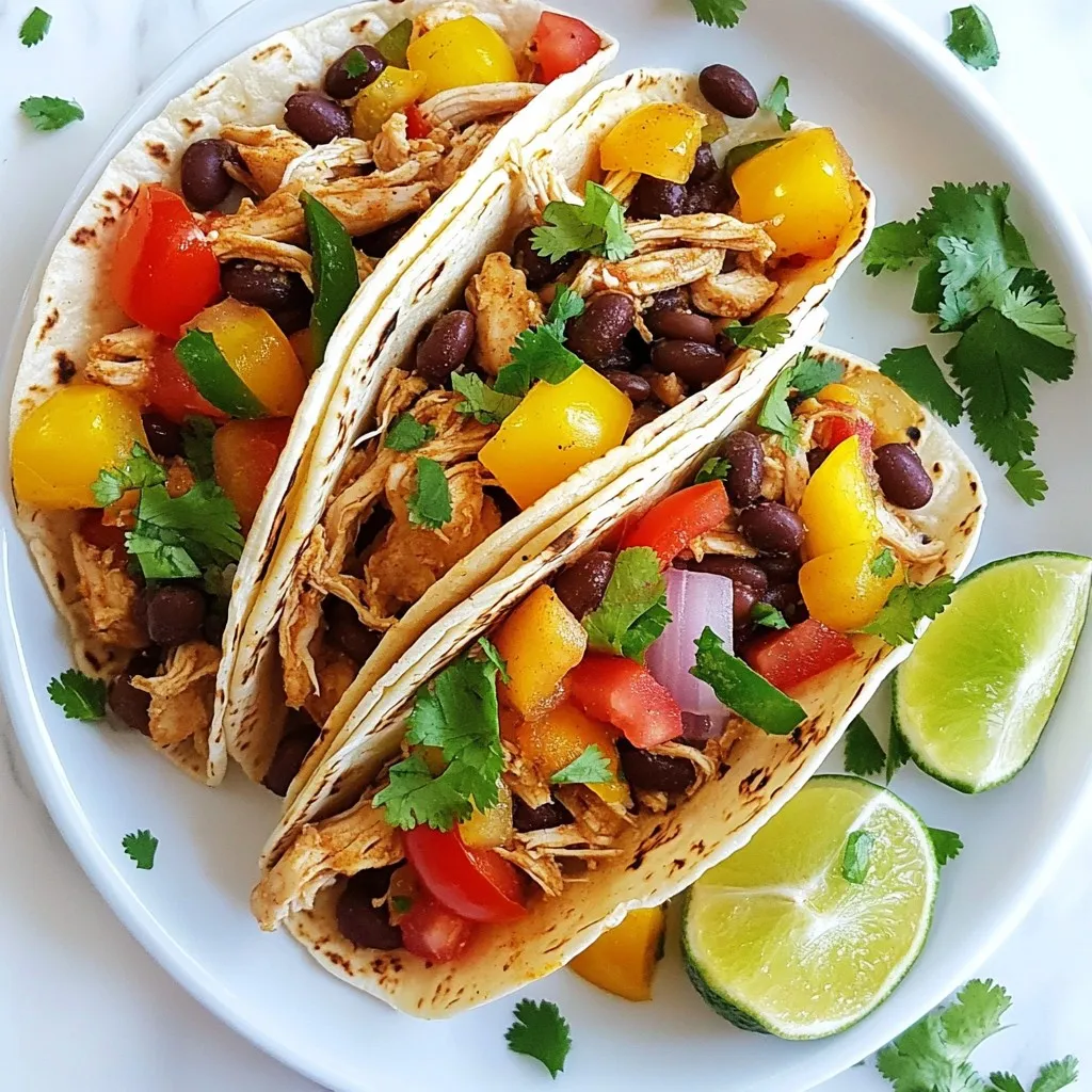 After cooking, it’s time to shred the chicken. Take two forks and pull the chicken apart right in the slow cooker. This keeps the flavors together. Mix the shredded chicken with the beans, tomatoes, and peppers. This step is important. It helps all the ingredients blend well. The flavors will come together beautifully, making your tacos even tastier!