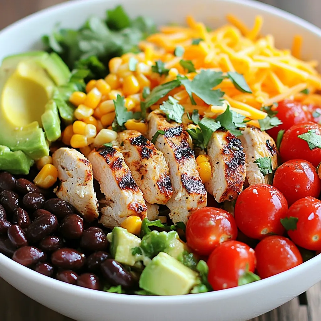 To save time, prep your ingredients ahead of cooking. Dice the vegetables and store them in the fridge. You can grill the chicken a day before and keep it chilled. This makes assembly quick and easy. You can also make the dressing in advance. Keep it in a sealed jar. Just shake it up before pouring it on your salad. This allows you to enjoy a fresh and flavorful meal with minimal effort.