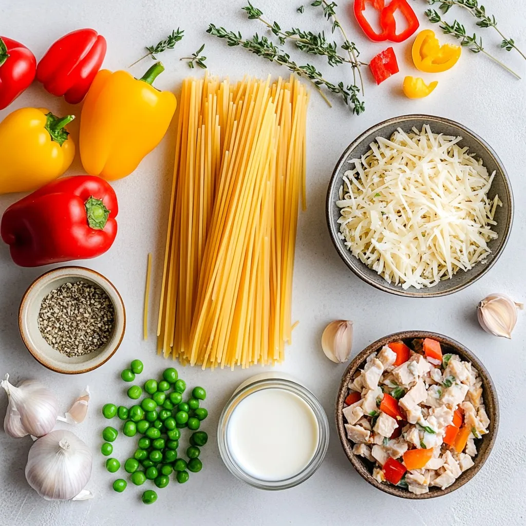 Tuna Tetrazzini shines with its simple yet tasty ingredients. You start with pasta, either spaghetti or fettuccine. This gives the dish a nice base. Next, you need olive oil, onion, garlic, and mushrooms. These veggies add flavor and texture. The tuna brings protein, while broth keeps it moist. Heavy cream and cheese make it rich and creamy.