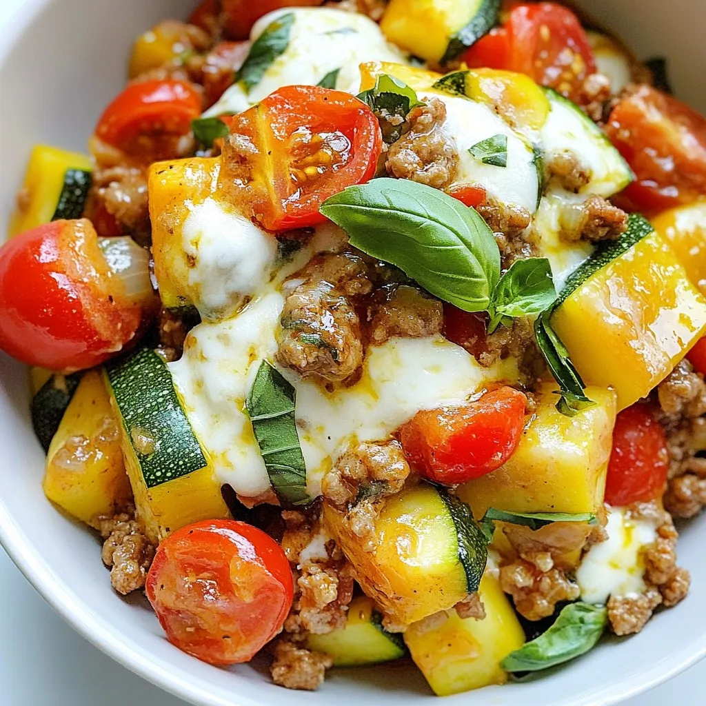 Once done, remove the skillet from the heat. Garnish with fresh basil leaves. This adds color and a fresh taste. Serve hot, and enjoy your Turkey Zucchini Skillet!