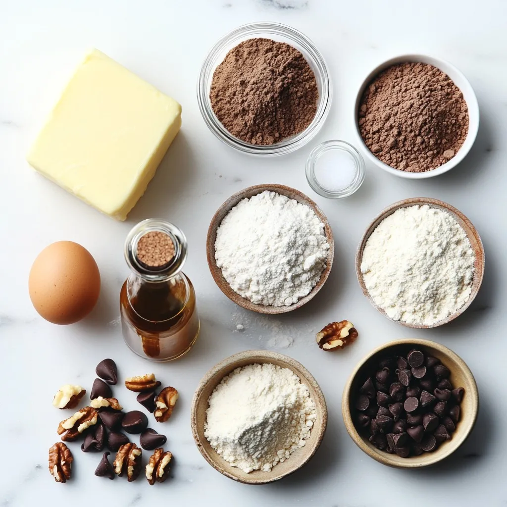 For the butter, unsalted works best for taste control. You can use salted butter but reduce the sea salt. Granulated sugar gives the right sweetness and texture. For a healthier option, try coconut sugar. Eggs are key for fudginess; no substitute works as well. Pure vanilla extract adds depth. If you’re out, use vanilla essence. For flour, all-purpose is ideal, but you can use gluten-free flour for a gluten-free version. Cocoa powder gives rich chocolate flavor. If you prefer a lighter taste, try Dutch-processed cocoa. Baking powder helps with lift, but some recipes skip it for denser brownies. Sea salt enhances the chocolate, so don’t skip it! Chocolate chips add extra gooeyness; feel free to use milk or dark chocolate. If you dislike nuts, skip the walnuts. You can also swap them with pecans or add more chocolate chips.