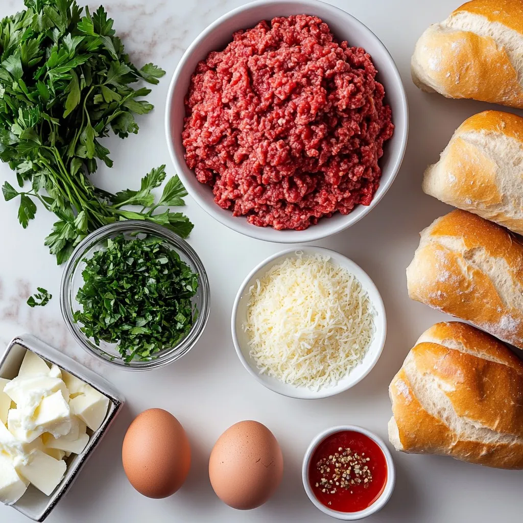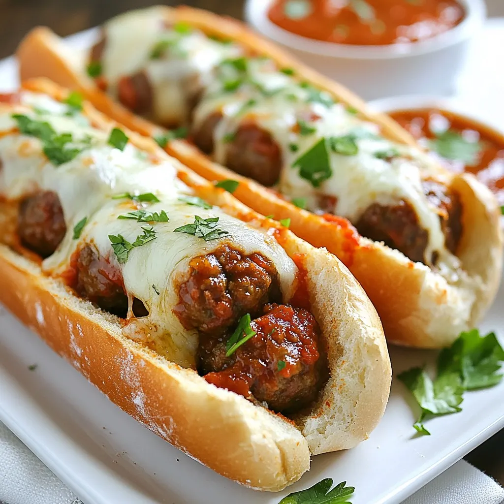- 1 pound ground beef - 1/2 pound ground pork (or replace with beef for a pork-free option) - 1/2 cup seasoned breadcrumbs - 1/4 cup freshly grated Parmesan cheese - 1/4 cup finely chopped fresh parsley - 2 cloves garlic, minced - 1 large egg - 1 teaspoon onion powder - 1 teaspoon dried Italian seasoning - Salt and freshly ground black pepper to taste I love mixing ground beef and pork for meatballs. The pork adds moisture and flavor. Using seasoned breadcrumbs helps bind the mix while adding taste. Fresh herbs, like parsley, really brighten up the meatballs. Garlic gives them a nice kick. The egg acts as a binder, so everything sticks together well. A pinch of salt and pepper rounds out the flavor. - 2 cups marinara sauce (store-bought or homemade for best flavor) For the sauce, you can use store-bought marinara to save time. But, homemade sauce tastes great and adds a personal touch. When making your own, try adding herbs like basil or oregano. A dash of red pepper flakes can spice things up. - 4 sub rolls - 1 1/2 cups shredded mozzarella cheese For the rolls, choose soft sub rolls that hold up well. They should be sturdy enough for the filling but soft enough to bite into. Mozzarella cheese is the best choice for melting. It gets gooey and stretchy, making each bite delicious. Consider adding a sprinkle of Parmesan on top for extra flavor. {{ingredient_image_2}} - Combining the ingredients Start by mixing the ground beef and ground pork in a large bowl. If you want a pork-free dish, just use beef. Add seasoned breadcrumbs, grated Parmesan, and chopped parsley. Then, include minced garlic, the egg, onion powder, Italian seasoning, and a pinch of salt and pepper. Mix using your hands or a spoon until it's well blended. - Proper meatball shaping techniques Next, shape the mixture into meatballs. Each ball should be about the size of a golf ball, or roughly 1 inch in diameter. You should get around 16 meatballs from this mixture. Make sure to roll them gently to keep them nice and round. - Skillet frying tips for browning Heat 2 tablespoons of olive oil in a large skillet over medium heat. Once the oil shimmers, carefully add the meatballs. Cook them for 5 to 7 minutes. Turn them often to get a golden-brown crust on all sides. - Simmering in marinara sauce After browning, pour 2 cups of marinara sauce over the meatballs in the skillet. Cover the skillet with a lid. Let them simmer for 10 to 15 minutes. Check the meatballs to make sure they are cooked through. The internal temperature should reach 160°F (70°C). - Preparing sub rolls While the meatballs simmer, prepare your sub rolls. Slice each roll in half lengthwise, but do not cut all the way through. Leave a hinge to keep them together. - Layering meatballs and cheese Once the meatballs are ready, use tongs to place four meatballs into each sub roll. Spoon some marinara sauce over the meatballs. Then, top each sub with a generous handful of shredded mozzarella cheese. Place the loaded subs on a baking sheet. Now, it’s time to bake those delicious meatball subs! To make great meatballs, you need to balance moisture and binders. Use ground beef and pork to keep them juicy. The breadcrumbs and egg help hold everything together. Too much moisture makes them mushy, while too little makes them dry. Aim for a soft yet firm texture. Sealing in flavors is key while cooking. Browning the meatballs in olive oil adds a nice crust. This caramelization enhances the taste. After browning, let them simmer in marinara sauce. This helps the meatballs soak up more flavor. For the best cheese melt, preheat your oven to 400°F (200°C). This temperature melts the cheese evenly. Bake the subs for 8-10 minutes. Keep an eye on them to avoid overcooking. You want the cheese to bubble and turn golden brown. Check doneness by gently pressing the cheese. It should feel soft and gooey. Avoid losing moisture by not opening the oven door too often. The heat helps keep everything warm and delicious. Serving your meatball subs well can elevate the meal. Use a rustic wooden board for a charming display. Arrange the subs neatly, side by side. This adds to the visual appeal. Garnish with extra parsley for a pop of color. A small bowl of marinara sauce on the side makes it fun for dipping. Consider sprinkling extra grated Parmesan on top. This adds a gourmet touch to your meal. Enjoy your beautifully presented subs! Pro Tips Use Fresh Ingredients: Opt for fresh herbs and high-quality meat to enhance the flavor of your meatballs. Fresh ingredients can make a significant difference in taste. Don't Overmix: When combining the meat and other ingredients, mix just until combined. Overmixing can lead to tough meatballs. Experiment with Cheese: For added flavor, consider mixing different types of cheese into the meatball mixture, such as provolone or fontina. Rest Before Serving: Allow the meatball subs to rest for a few minutes after baking. This helps the flavors meld together and makes them easier to eat. {{image_4}} You can switch up the meat for your subs. Try turkey or chicken meatballs. They offer a lighter taste but still pack a punch. For a vegetarian twist, use mushrooms or lentils. Mushrooms give a rich, meaty flavor. Lentils are hearty and full of protein. Both options keep the meal healthy and tasty. Want to spice things up? Try different marinara recipes. Add red pepper flakes for heat or fresh basil for brightness. If you're feeling adventurous, use pesto or Alfredo sauce instead. Pesto adds a fresh herb flair, while Alfredo gives a creamy richness. Each sauce brings its own unique flavor to your meatball subs. Toppings can take your subs to the next level. Explore different cheese blends like provolone and cheddar. These cheeses melt well and add depth. Roasted vegetables also make a great topping. Try bell peppers or zucchini for extra color and taste. Adding olives gives a briny kick that contrasts nicely with the meatballs. Each topping can change your sub