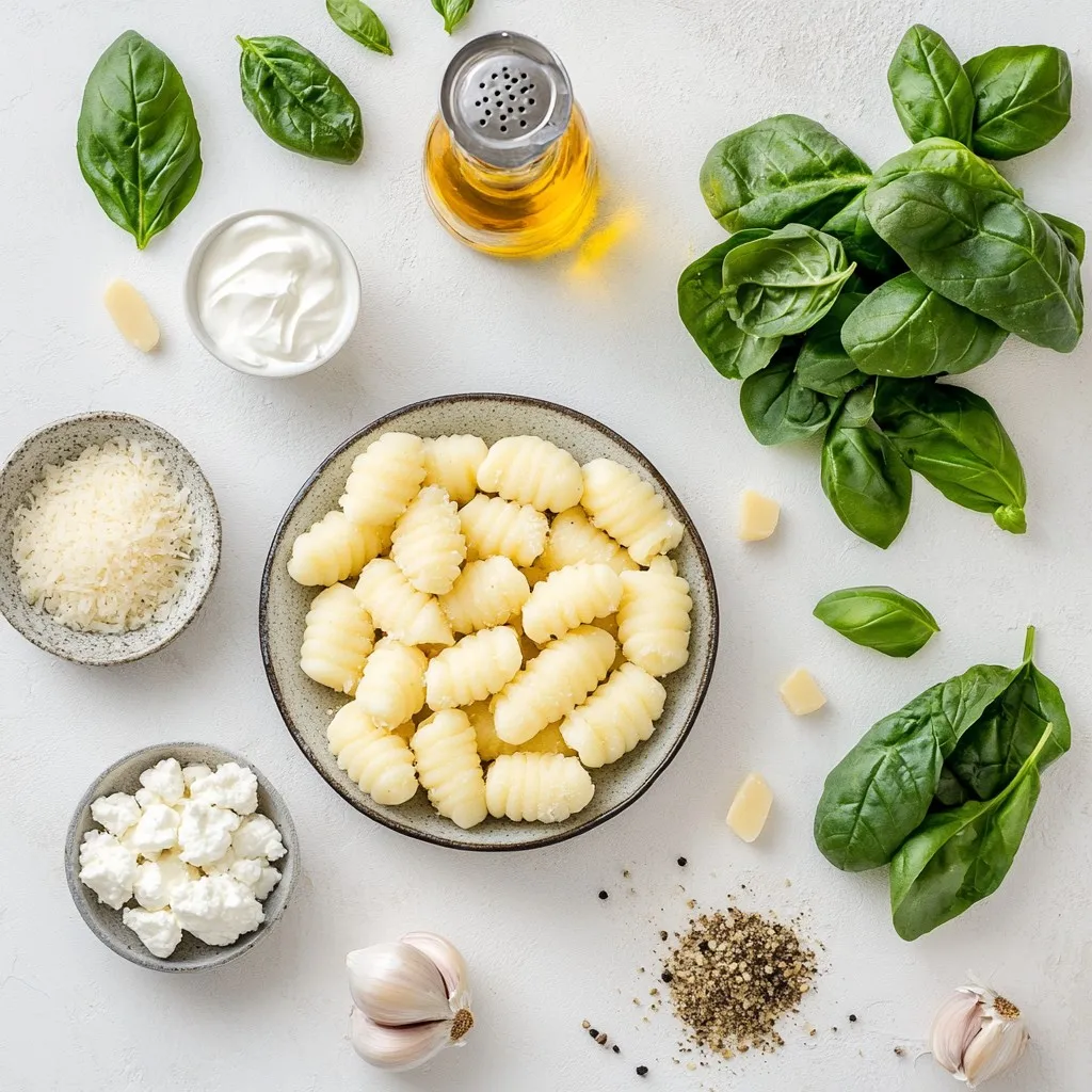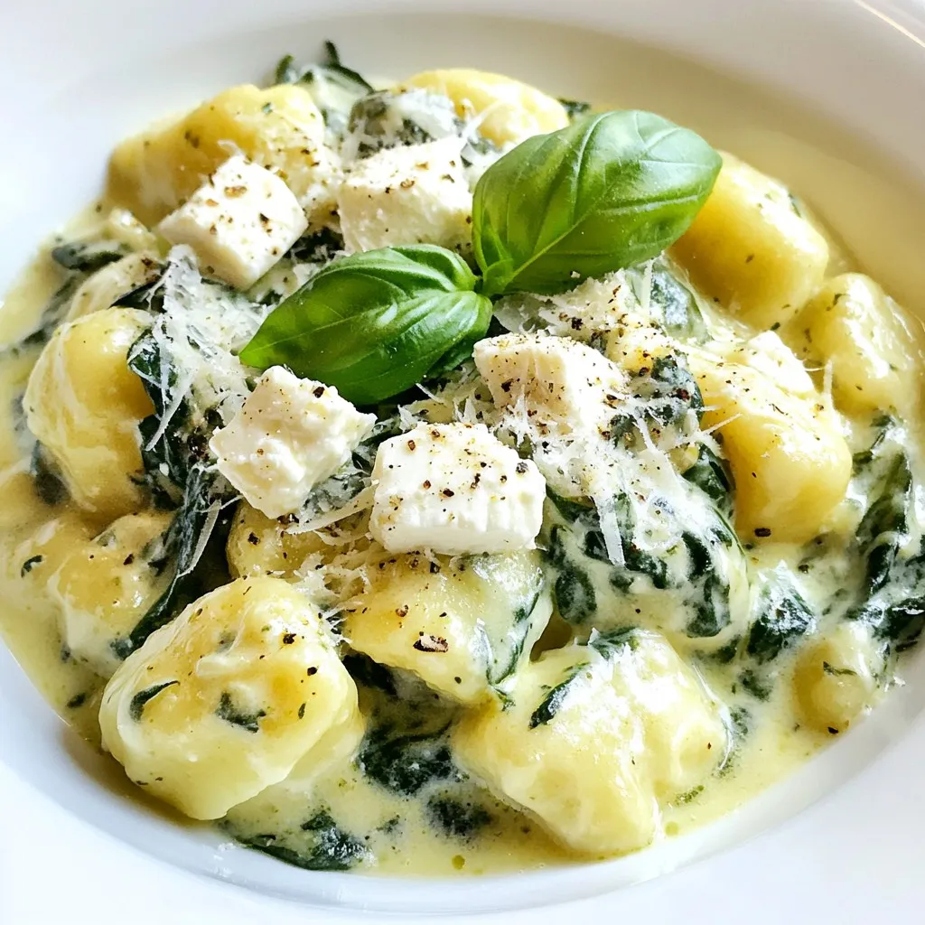 A rich and creamy dish featuring gnocchi, fresh spinach, and feta cheese.