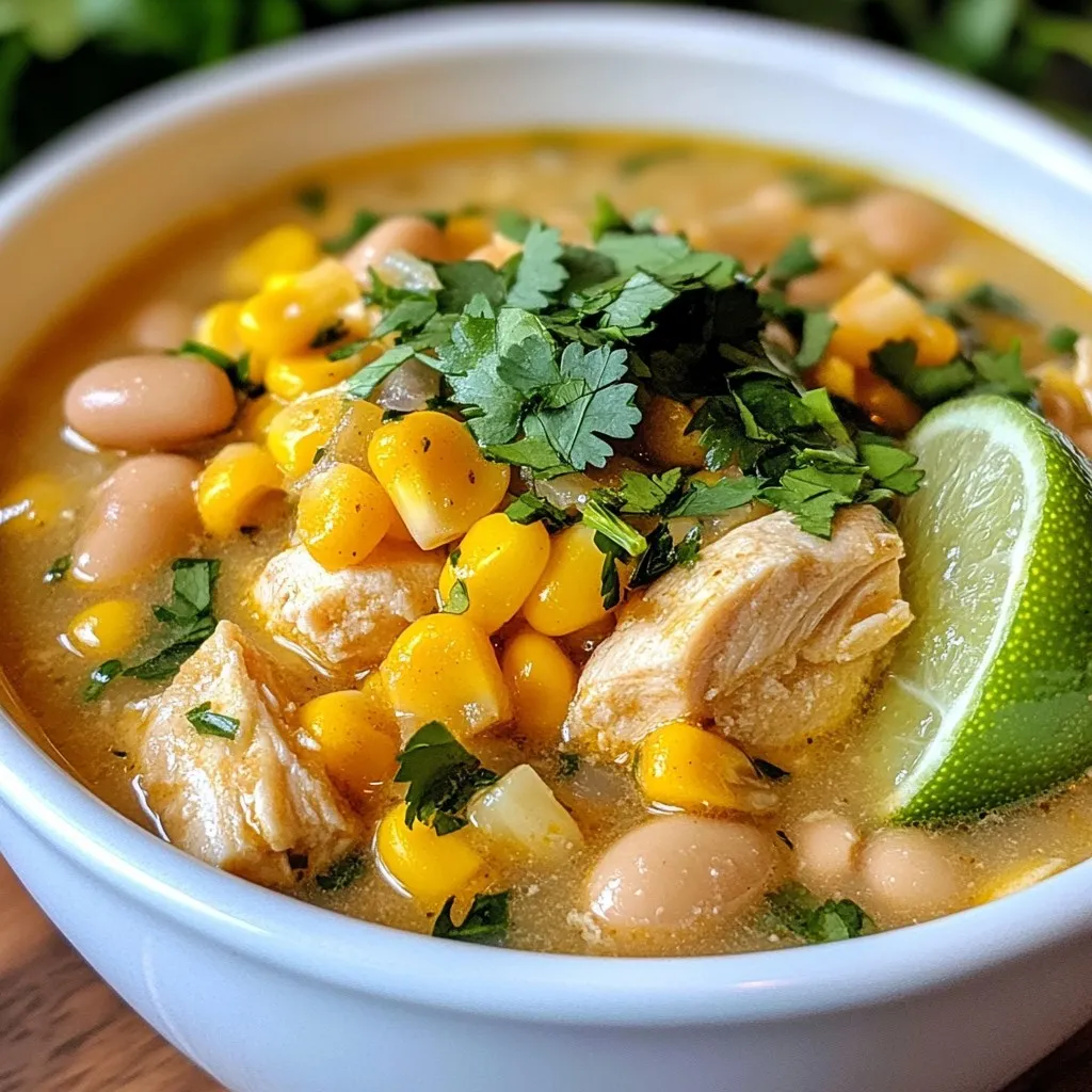A rich and creamy chili made with tender chicken, white beans, and spices, perfect for a cozy meal.