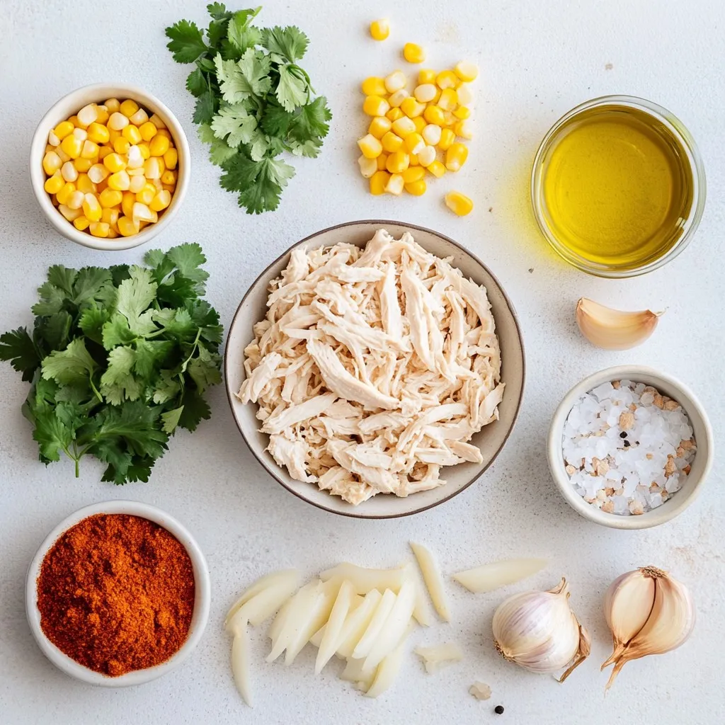 I use cooked chicken to save time. Shredded chicken works well and adds flavor. White beans give a creamy texture and add protein. Corn adds a sweet crunch, balancing the spice.
